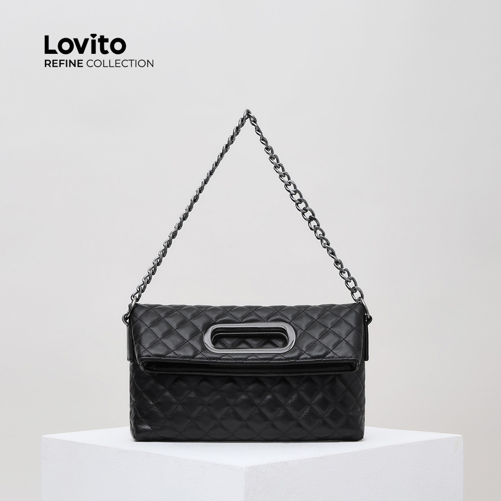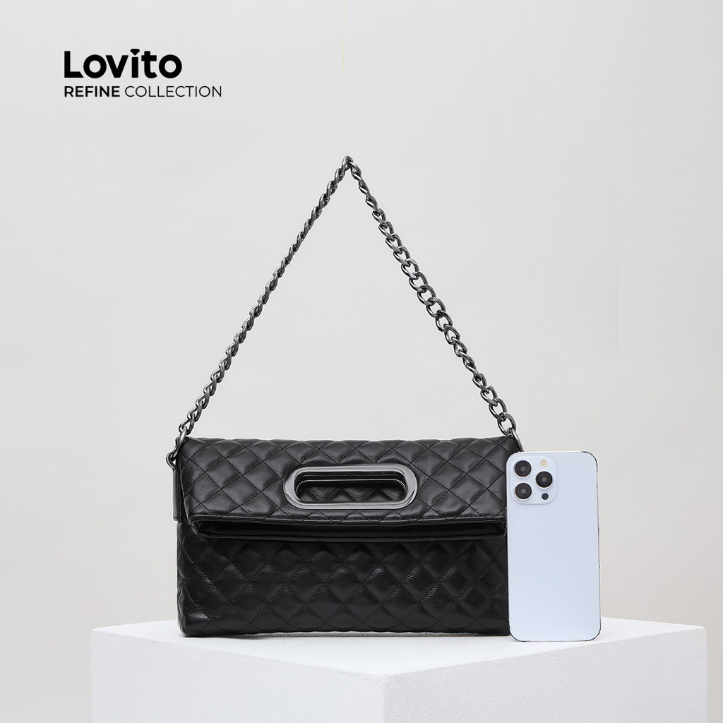 (Lovito Refine) Elegante Argyle Fashion Lingge Chain Fold Metal Carry Bolsa De Ombro Pequena Para Mulheres LFAR3131