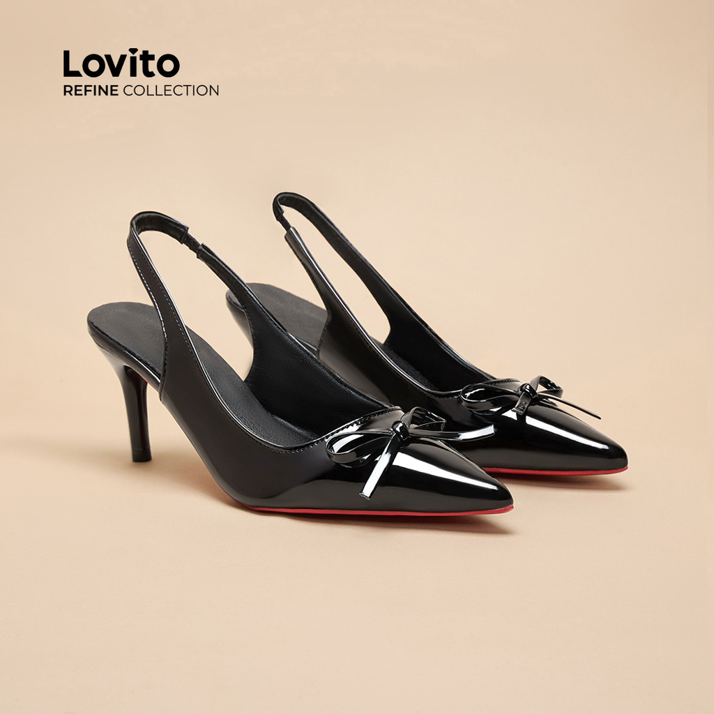 (Lovito Refine) Elegante laço liso salto alto apontado para trás salto de damasco vazio para mulheres LFAR11408