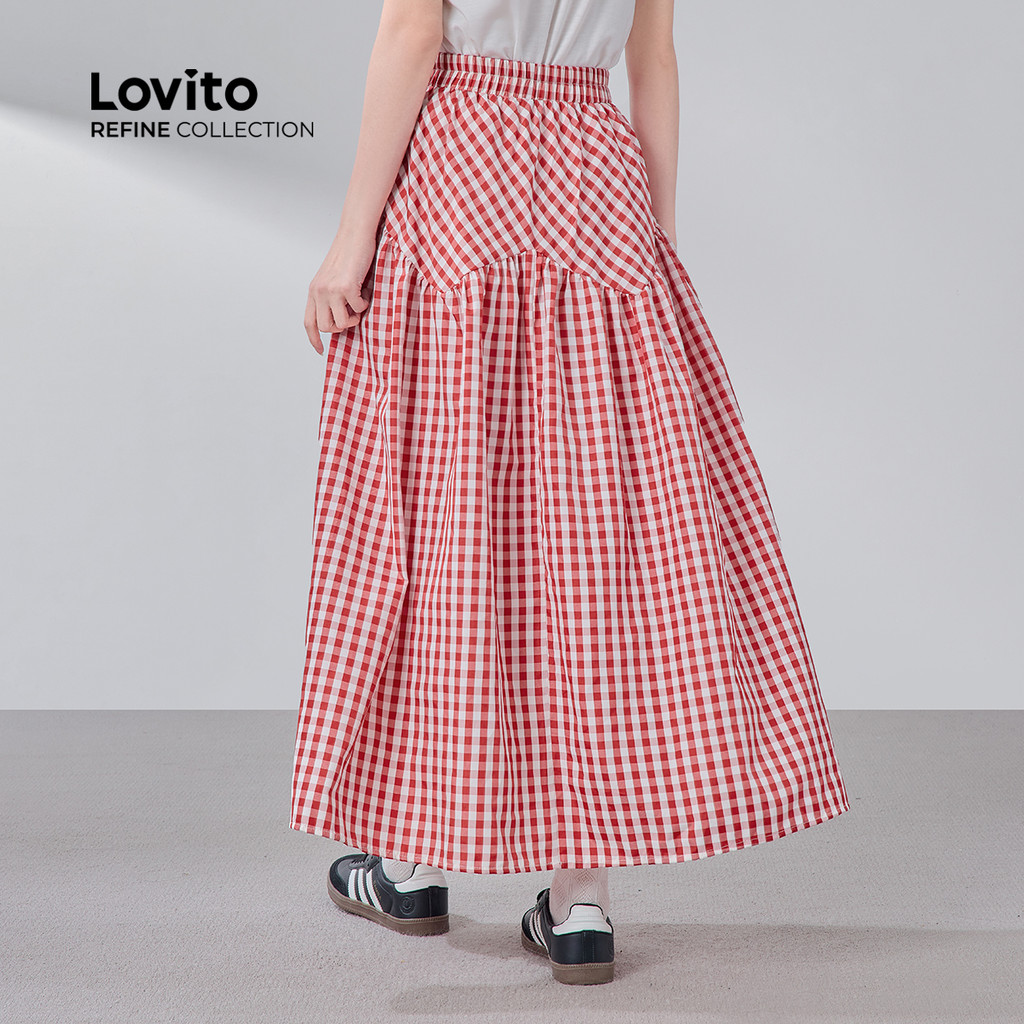 (Lovito Refine) Saias Casuais Estilo Preppy Plissadas Vermelhas Para Mulheres Na Primavera/verão LR18E048