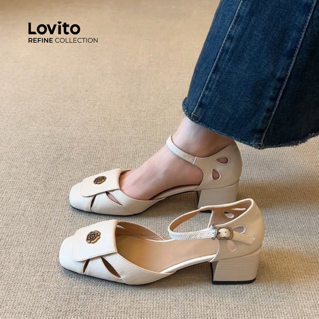 Lovito Refine Saltos Retrô Vintage Femininos Off-white LR13E445