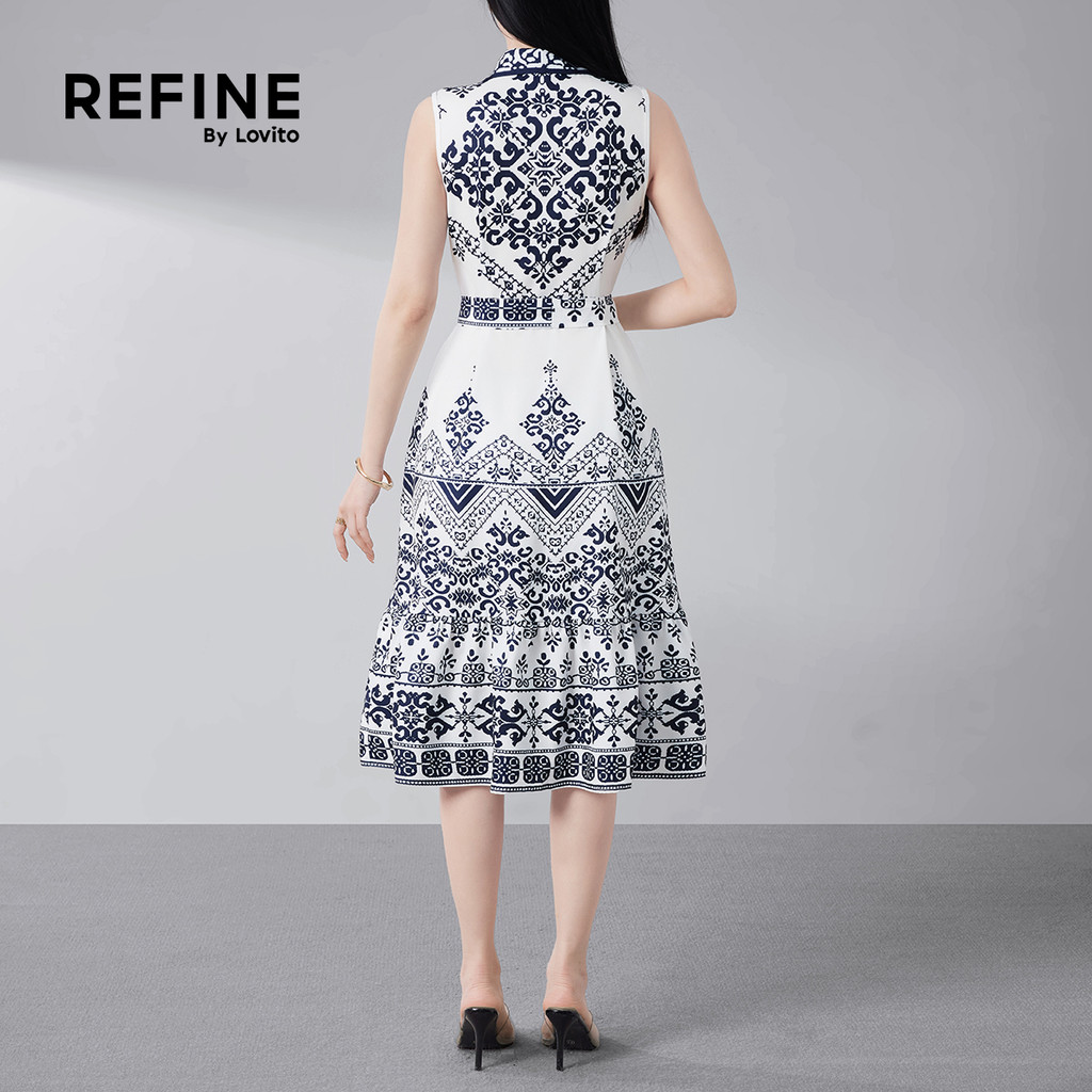 (Lovito Refine) Vestido Boho com Botão Frontal e Cinto Padrão para Primavera/verão para Mulheres. LR32E056