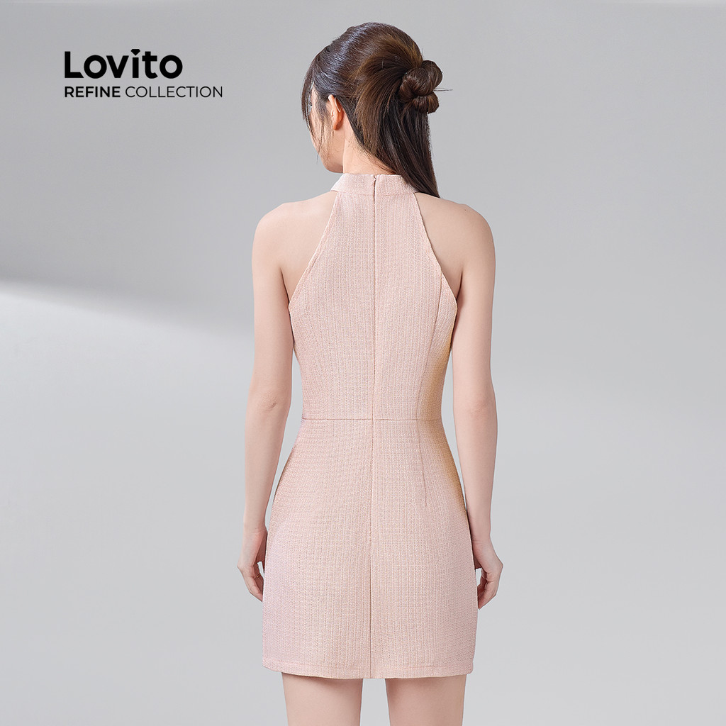 (Lovito Refine) Vestido Casual Em Tecido Tweed Novo Estilo Chinês Com Laço Rosa Primavera/verão Para Mulheres LR29A074