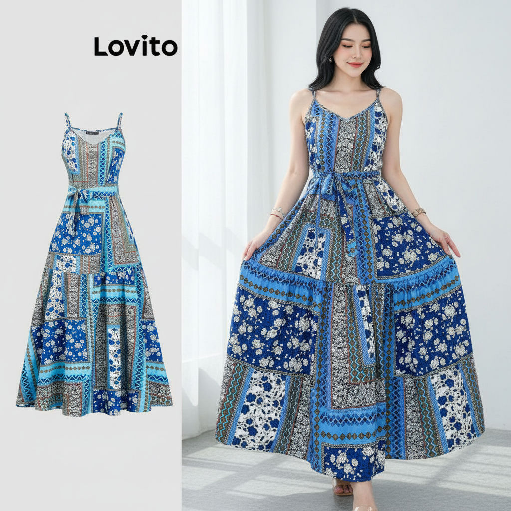 Lovito Refine Vestido Casual Estampa Tribal Verão/Primavera Com Cinto Feminino L109MD678