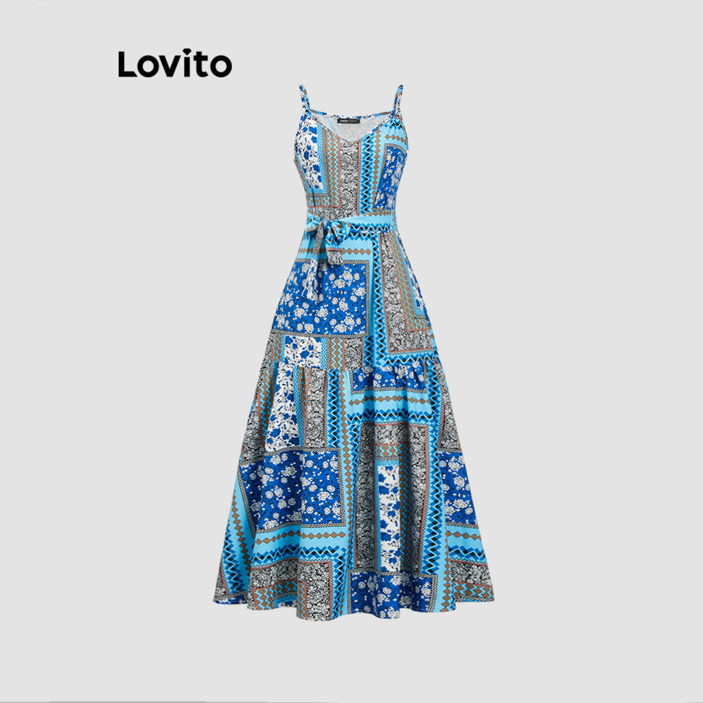 Lovito Refine Vestido Casual Estampa Tribal Verão/Primavera com Cinto Feminino L109MD678