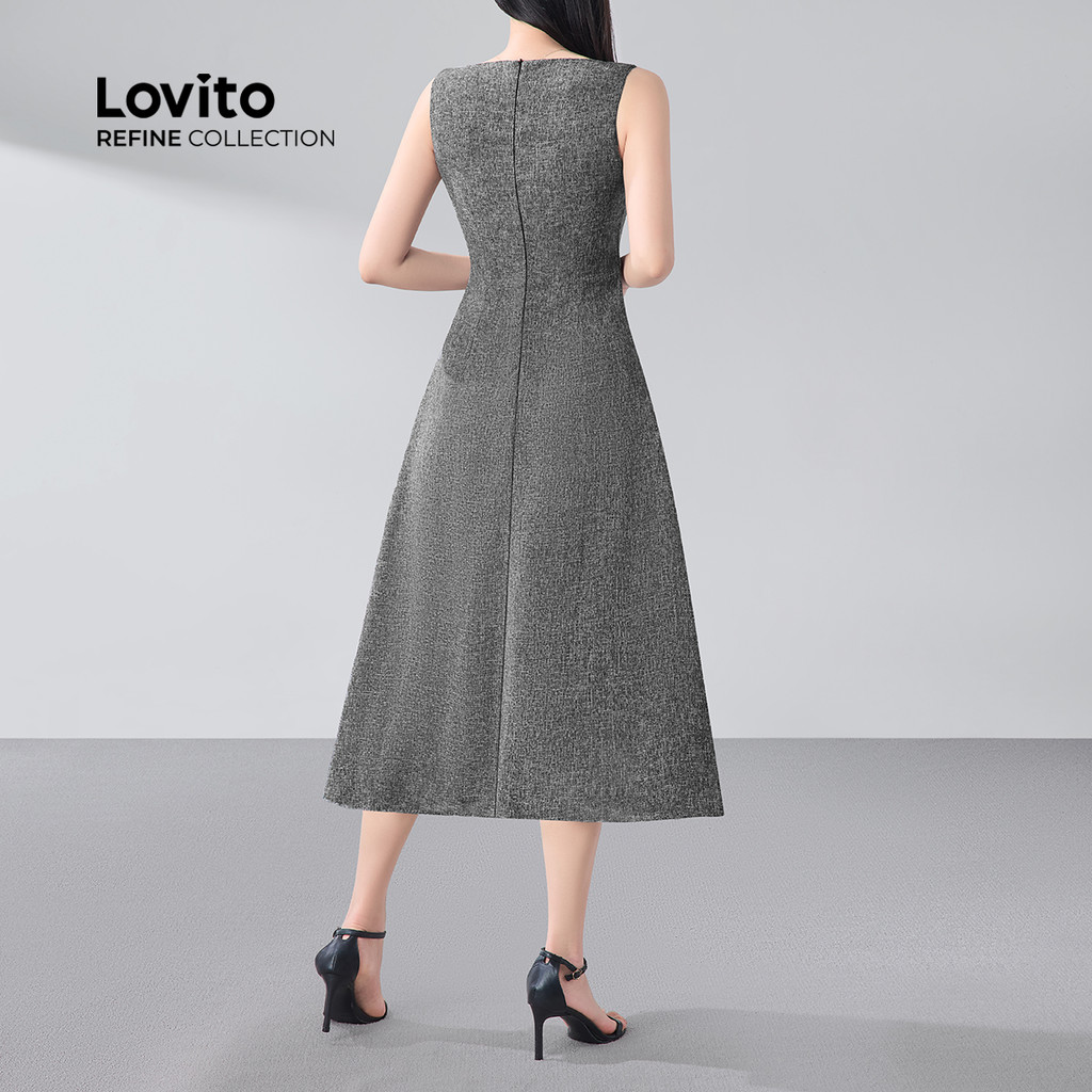 (Lovito Refine) Vestido Elegante com Estrutura Zíper Tweed Primavera/verão Vestido Preto para mulheres LR12E014