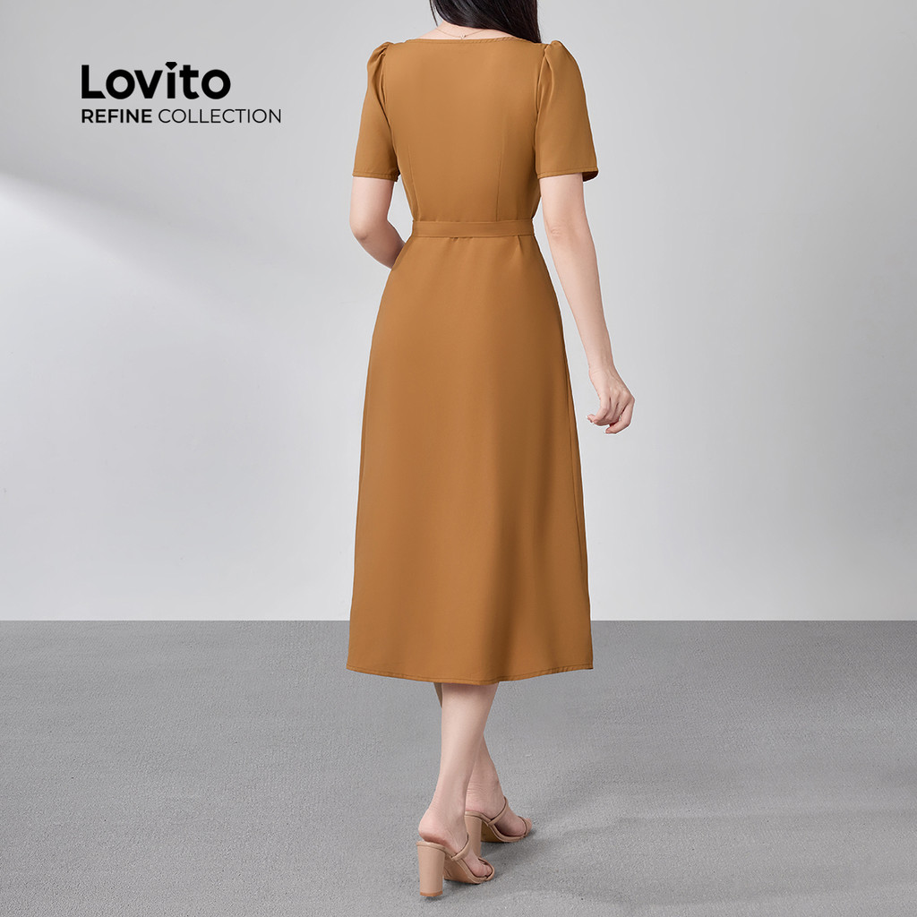 (Lovito Refine) Vestido Elegante de Botão com Cinto para Primavera/verão em Cáqui para mulheres LR18E211