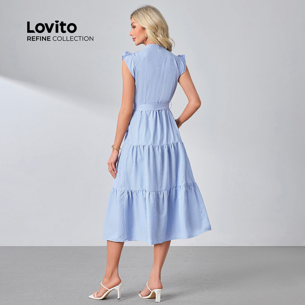(Lovito Refine) Vestido Elegante em Camadas com Costura de Tecido para Primavera/verão Vestido azul LR23L225
