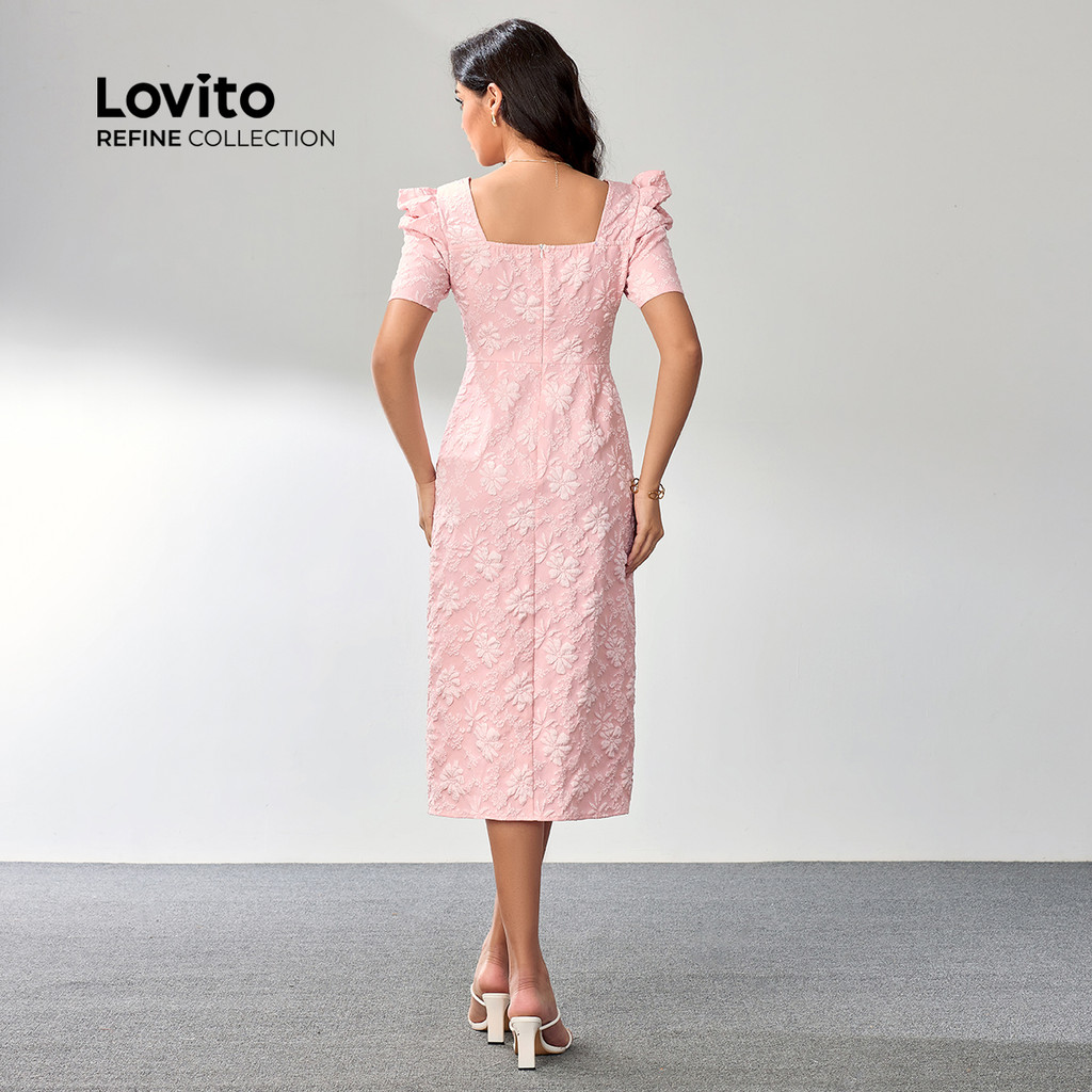 (Lovito Refine) Vestido Elegante Jacquard Dividido Na Frente Vestido De Verão/Primavera Para Mulheres LR4LD098