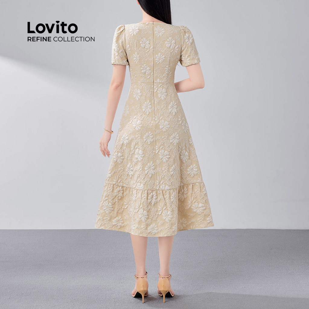 (Lovito Refine) Vestido Elegante Jacquard Primavera/verão Casual para Femininas LR18E018