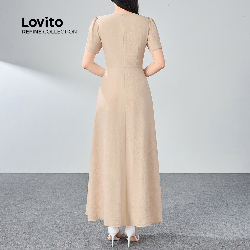 (Lovito Refine) Vestido Elegante Liso Colorblock Com Botão Primavera/Verão Cáqui Para Mulheres LR11ED016