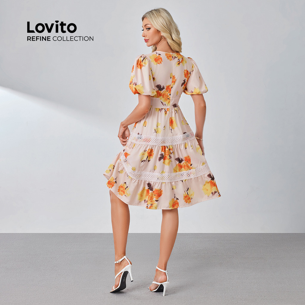 (Lovito Refine) Vestido Elegante Renda/Camadas Primavera/Verão Multicolorido Vestido Evangélico Mulheres LR21L089