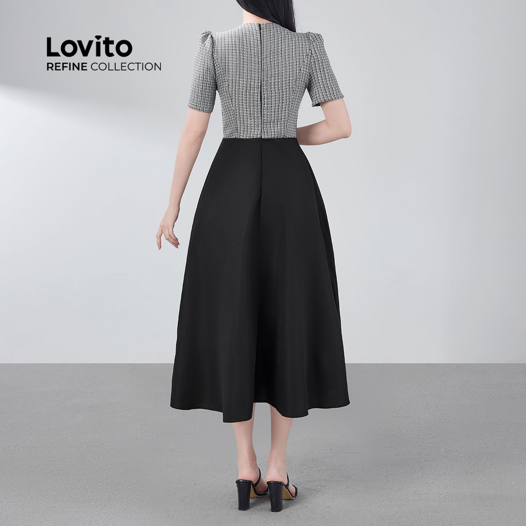 (Lovito Refine) Vestido Elegante Requintada Primavera/verão Vestido Preto para mulheres. LR29E054