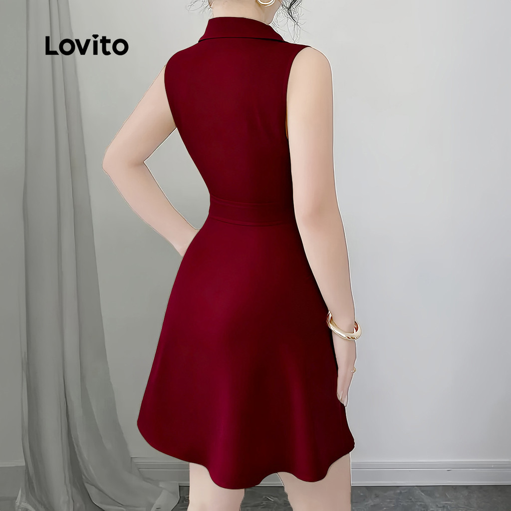 Lovito Refine Vestido Feminino Botão Casual Primavera Verão Cor Bordeaux L158ED336