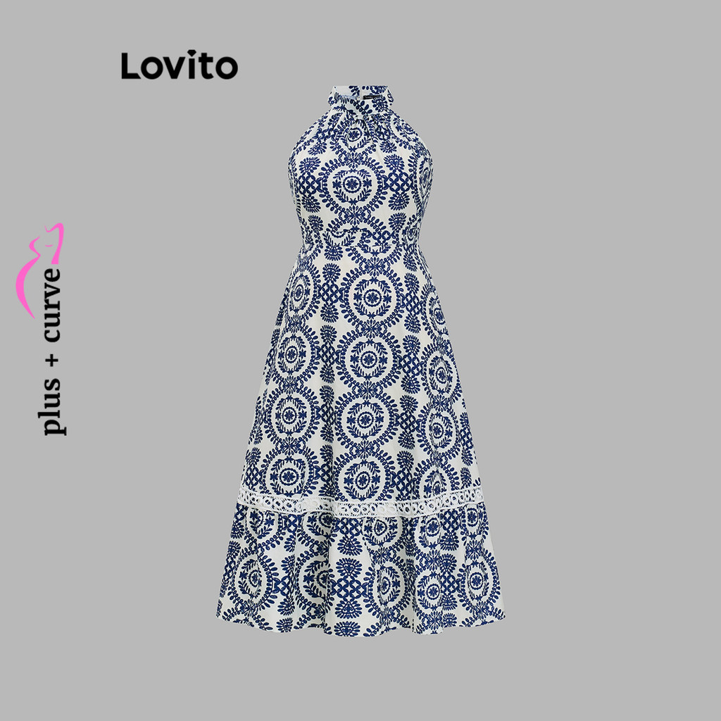 Lovito Refine Vestido Feminino Plus Size Renda Geométrica Verão Primavera LBL20490