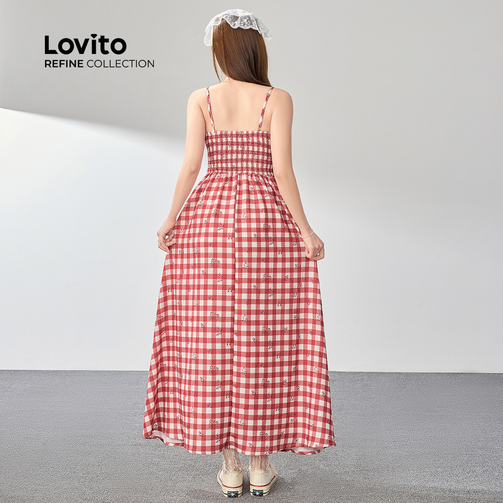 Lovito Refine Vestido Feminino Xadrez com Laço Frontal, Modelinho Primavera/Verão LR2AD007