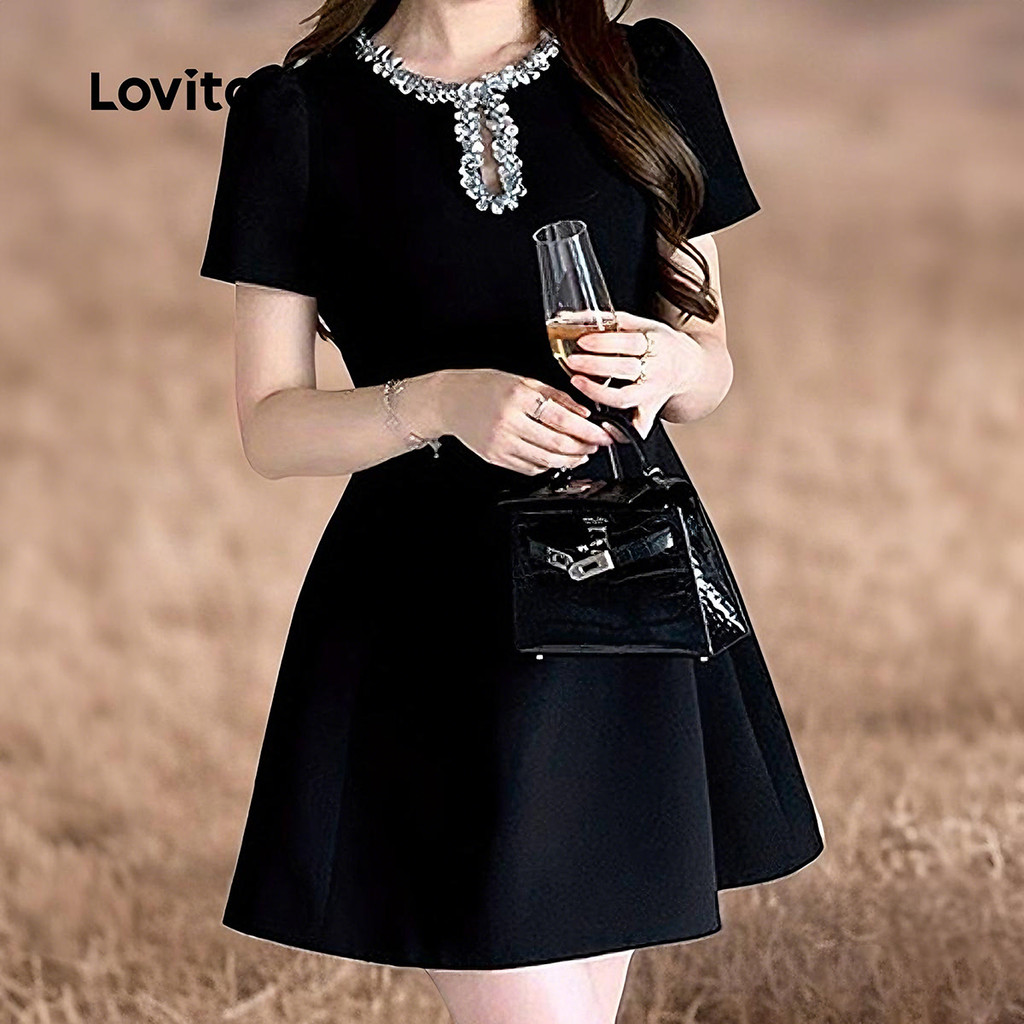 Lovito Refine Vestido Preto com Lantejoulas para Mulheres Primavera/Verão L165ED312