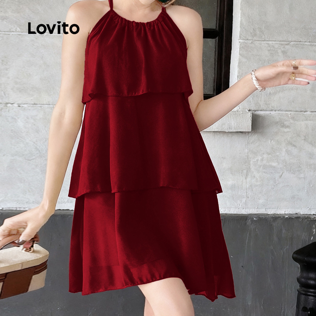 Lovito Refine Vestido Vermelho em Camadas Boho Primavera Verão Feminino L157ED411