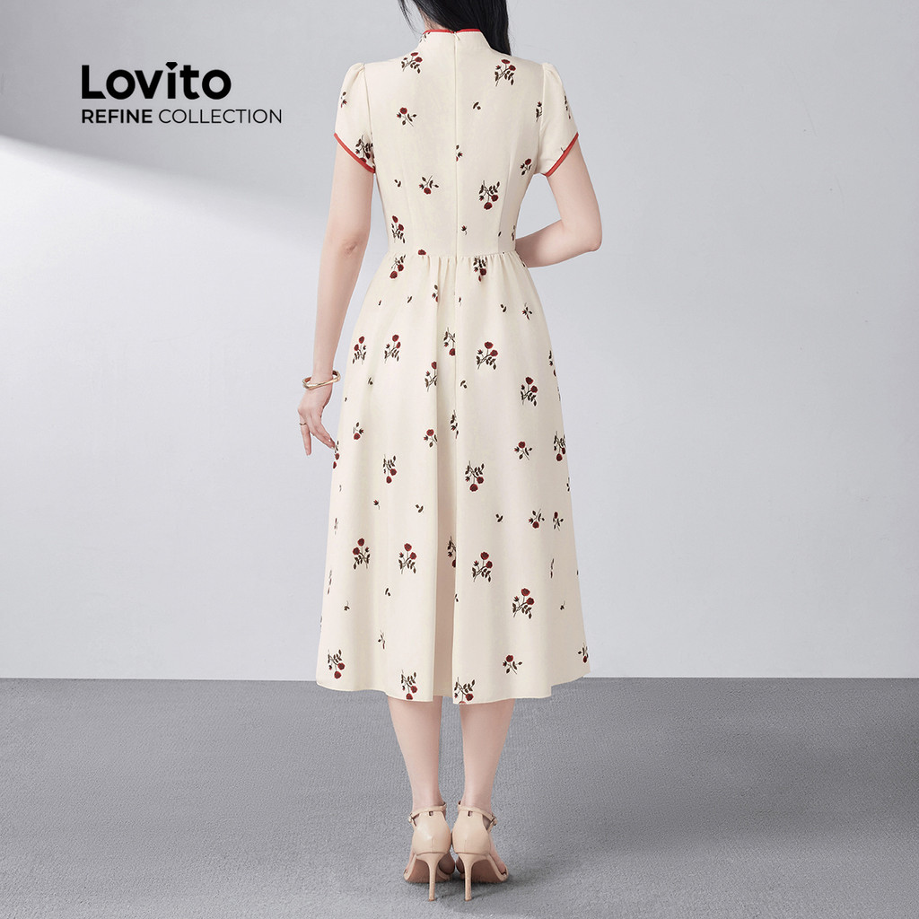(Lovito Refine) Vestido Vintage com Contraste de Amarração Estilo Chinês Primavera/verão damasco LR26E059