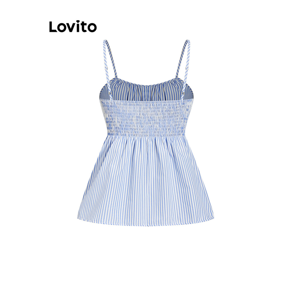 Lovito Regata Boho Listrada Com Babados E Bainha Plissada Com Estrutura Regata Feminina L100MD126