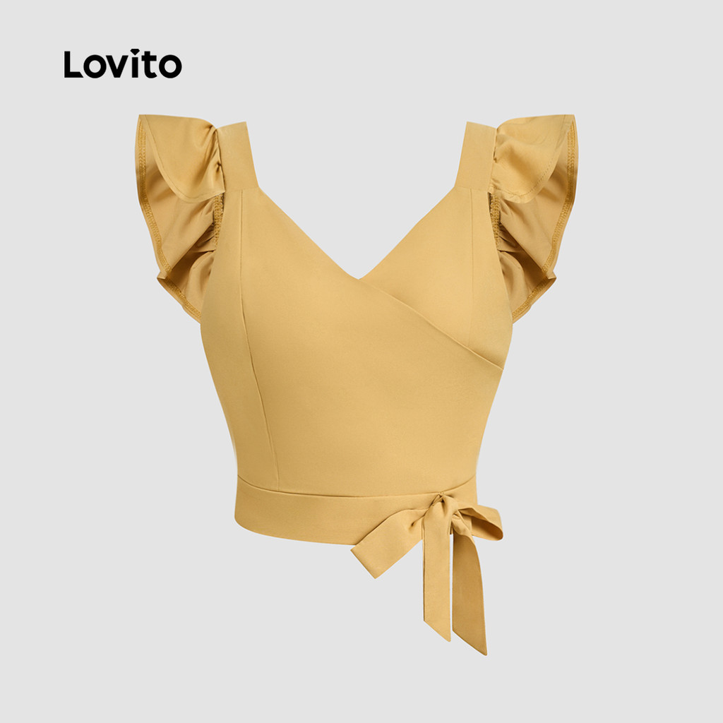 Lovito Regata Casual Amarela Com Laço Liso Primavera/verão Para Mulheres L134ED297