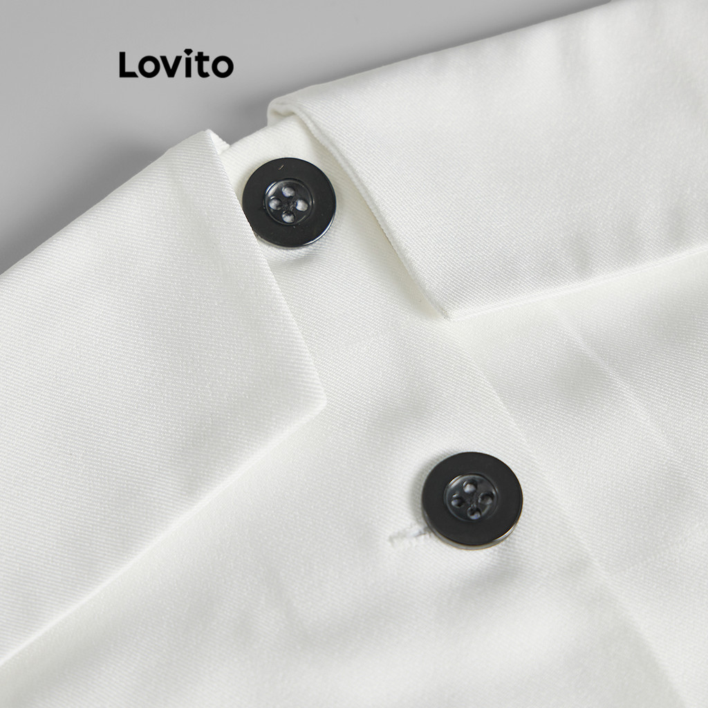 Lovito Regata Casual Com Botões Lisos Para Mulheres L67AD036 (Branco)