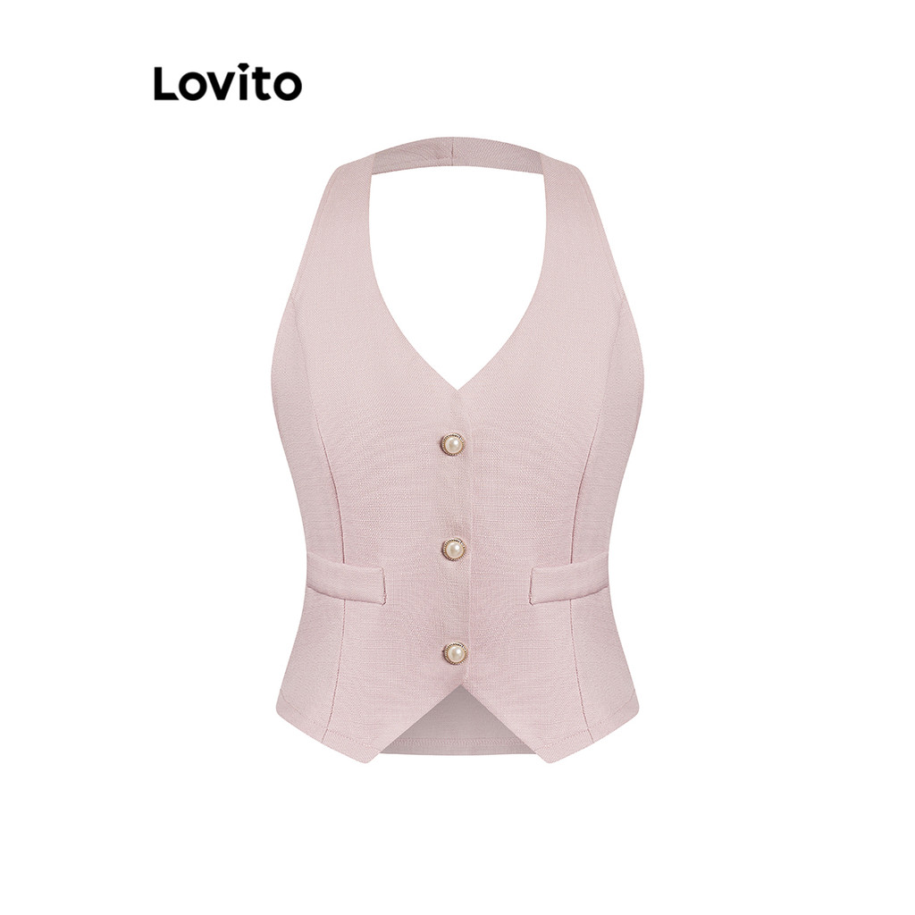 Lovito Regata Casual Com Botões Lisos Para Mulheres L98AD051