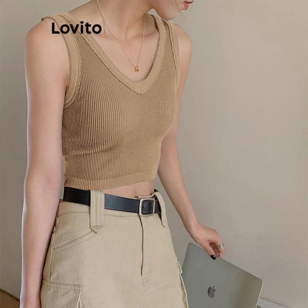 Lovito Regata Casual Feminina Cropped TKNS40BX085