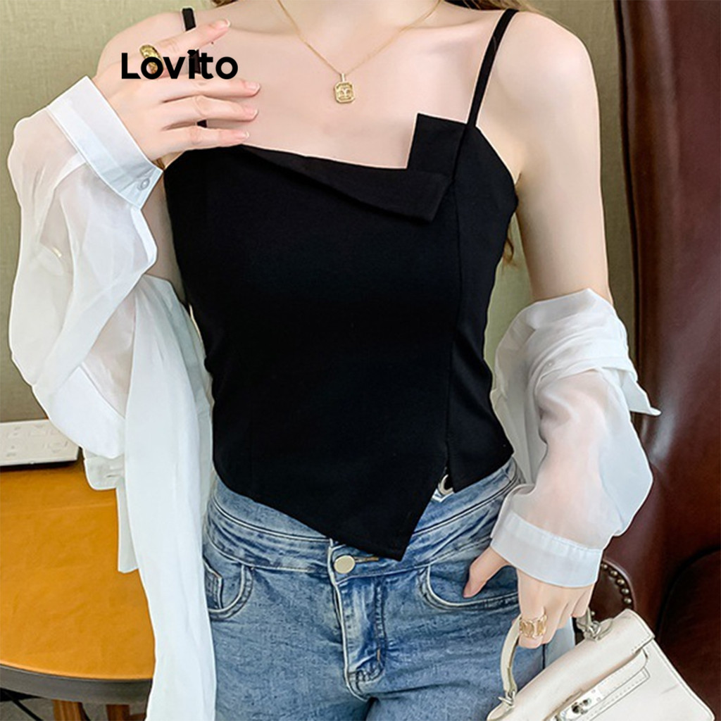 Lovito Regata Casual Lisa Assimétrica Regata Para Mulheres LNE71325