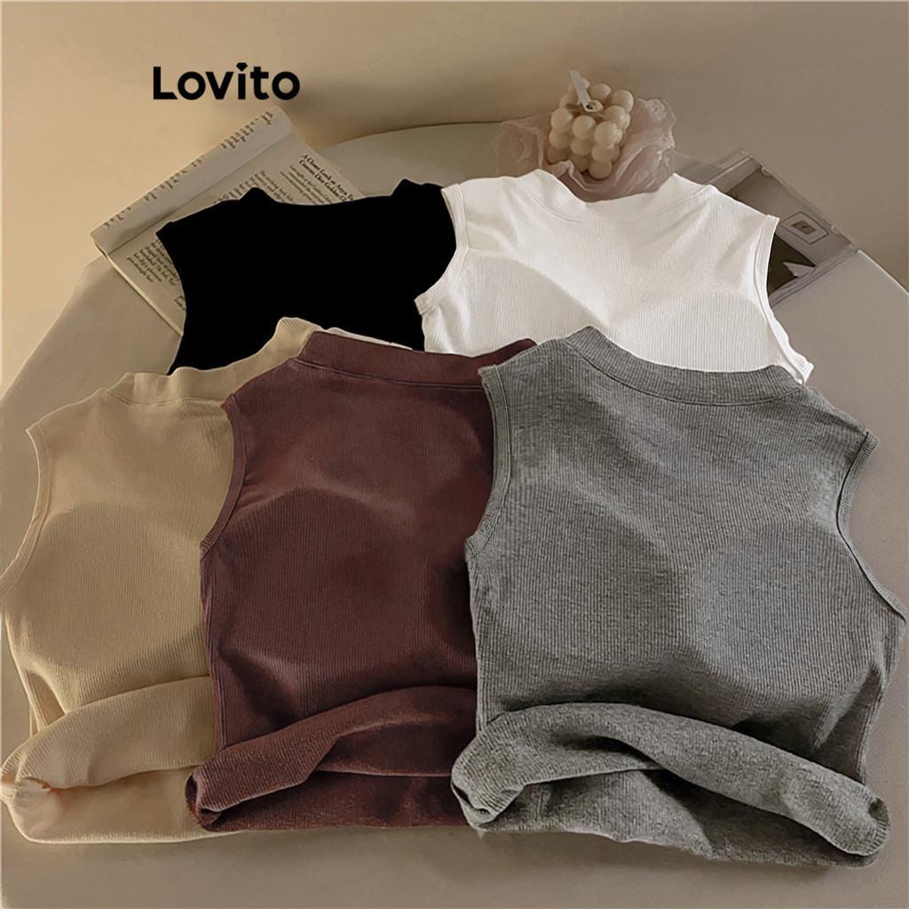 Lovito Regata Casual Lisa Com Gola Redonda Para Mulheres LNE34039 (Marrom/Cinza Escuro/Branco/Preto)