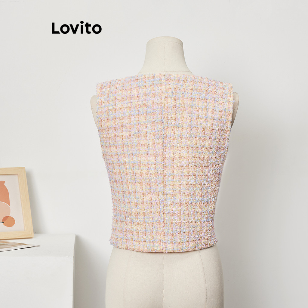 Lovito Regata Casual Lisa De Tweed Com Botão Frontal Para Mulheres L74ED251 (Multicolorido)