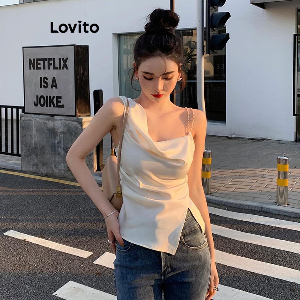 Lovito Regata Feminina Assimétrica Lisa Casual Dividida LNE49341