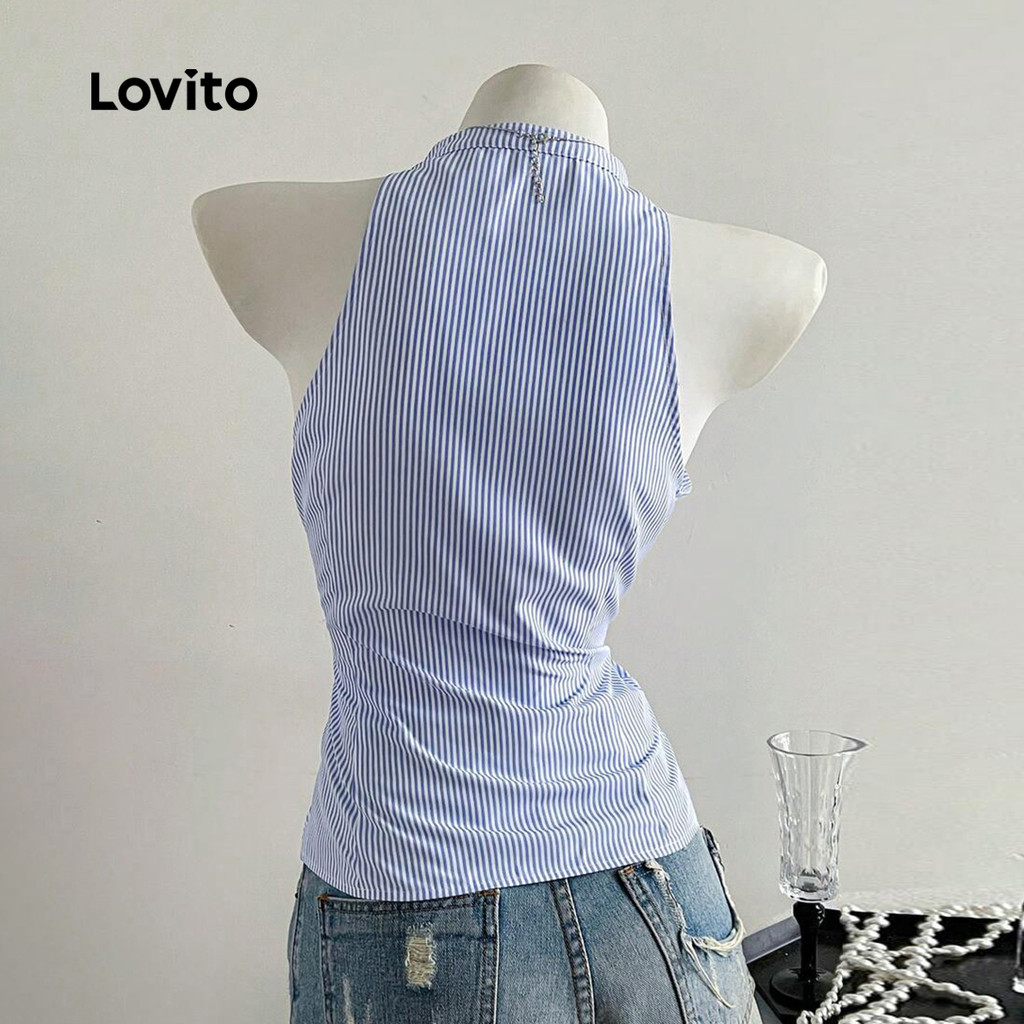 ✅DESTAQUES -❤️Botão de botão -❤️Geométrico geométrico -❤️Plissado Plissado -❤️Macio e confortável -❤️Botão Enfeite -❤️Verão/primavera ✅DESCRIÇÕES Padrão de cores: listrado Estilo do estilo: Casual Mais tamanho: Não Material do Poliéster: Poliéster Composição: 100% Poliéster Tipo de Encaixe: Encaixe Regular Folha pura: Não Estica de estiramento: Não estiramento Região de origem da China continental: China continental ✅Referência de ENCAIXE Modelo do modelo está vestindo: S ✅O pacote inclui o pacote 1X Topo ✅Introdução de LOVITO Lovito é uma marca emergente que acredita no poder da menina, comprometida em fornecer escolhas de roupas da moda e acessíveis para diferentes estilos, necessidades e identidades. Acreditamos que a moda deve ser divertida, libertando, e fazer você se sentir bem. Afinal, o melhor acessório para qualquer look é autoconfiança. ✅Notas de compra Por favor consulte gentilmente sua altura e a tabela de tamanhos antes de comprar. Diferença de 2-3% de acordo com a medição manual. Todas as imagens do produto nesta loja são 100% tiro real. Devido à luz e tela diferentes, uma diferença de cor sutil e erro real é normal. Siga nossa loja e conheça novos itens e melhores ofertas para você!! Se você tiver alguma dúvida, converse conosco e responderemos o mais rápido possível.😊