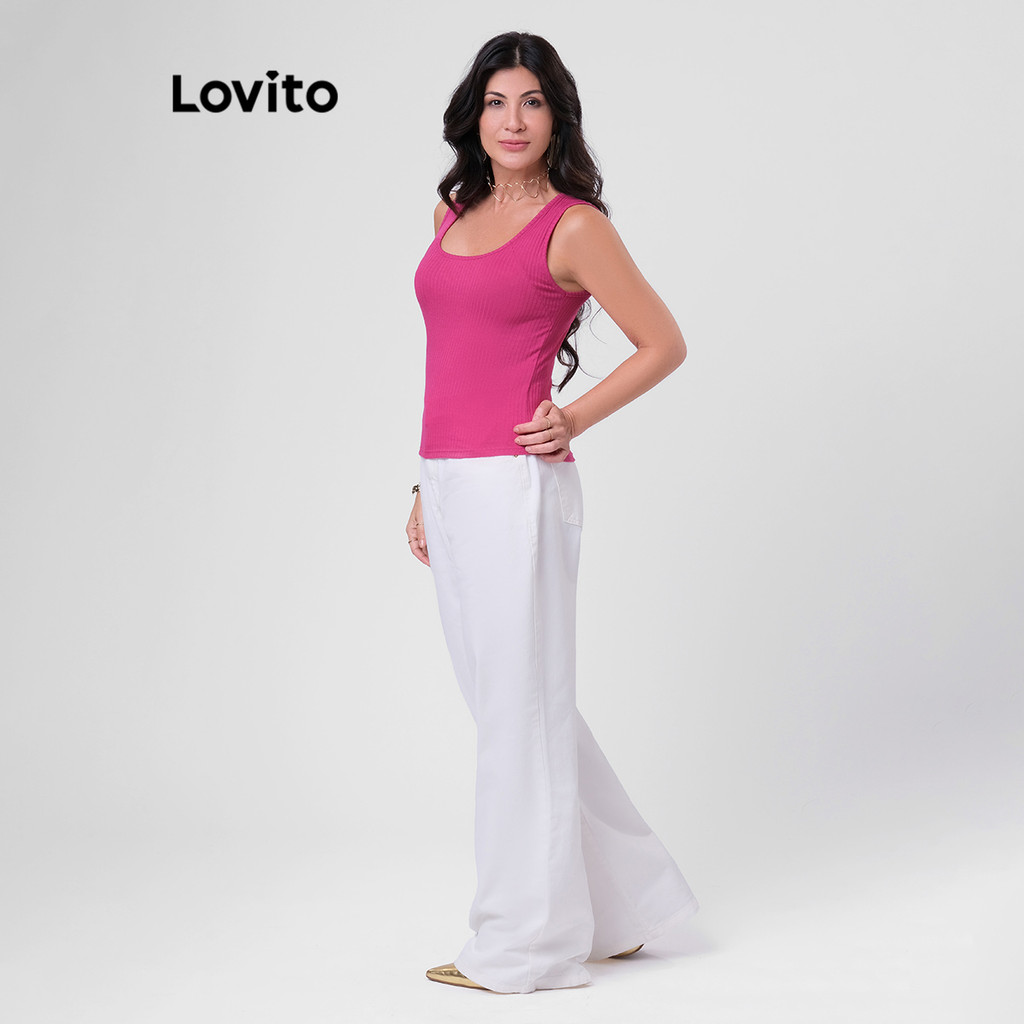 Lovito Regata Feminina Casual de Malha Canelada LB197BRL226