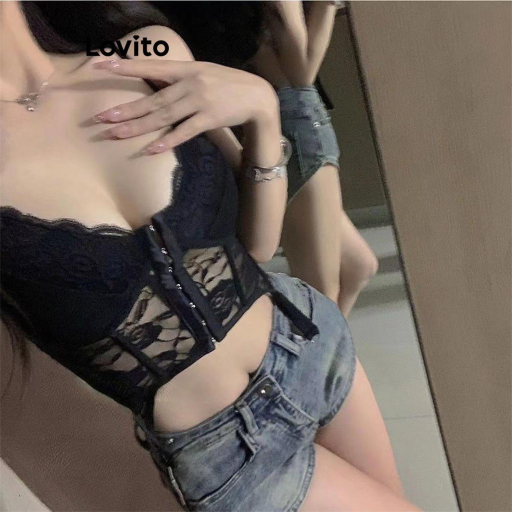 Lovito Regata Feminina de Renda Lisa para Verão, Modelo Sexy LNA56474