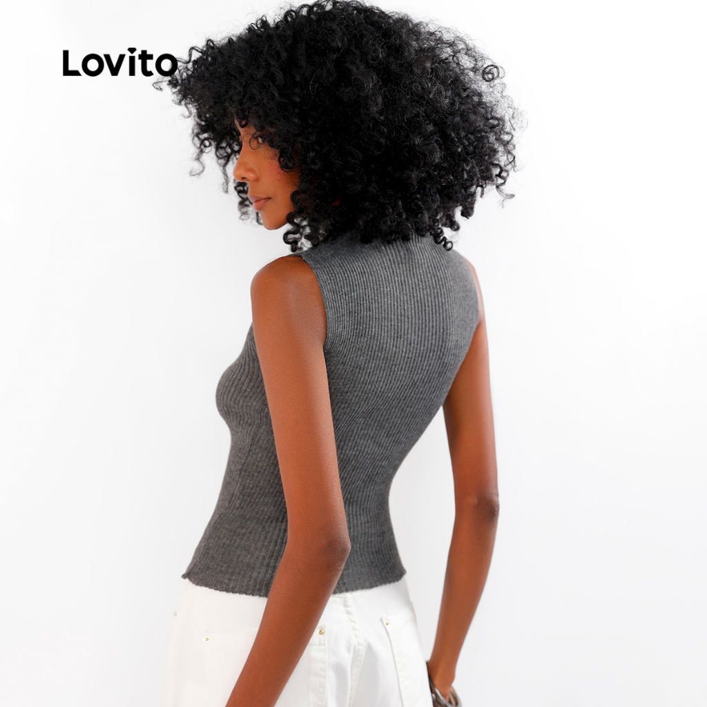 Lovito Regata Feminina Gola Alta de Tricot KTB714BRL744