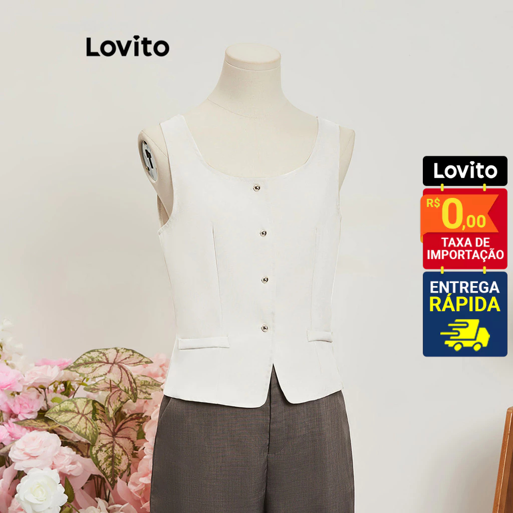 ✅DESTAQUES -❤️Botão -❤️Boa Textura ✅DESCRIÇÕES Padrão: Simples Estilo: Elegante Mais Tamanho: Não Material: Poliéster Composição: 100%Poliéster Tipo Fit: Slim Fit Transparente: Não Esticamento: Não Esticar Região Da Origem: País Da Brasil ✅PACOTE INCLUI 1X Topo ✅APRESENTAÇÃO DO LOVITO Lovito é uma marca emergente que acredita no poder das meninas, comprometida com a oferta de escolhas de roupas elegantes e acessíveis para diferentes estilos, necessidades e identidades. Nós acreditamos que a moda deve ser divertida, liberadora e você sentemos ótimos. Depois de todos, o melhor acessório para qualquer aspecto é de autoconfiança. ✅NOTAS DE COMPRA Compare suas medidas com nossa tabela disponível no site. Lembre-se de que, por serem feitas manualmente, as medidas podem variar de 1 a 2 cm. As cores dos produtos também podem ter pequenas diferenças em relação às fotos, dependendo da iluminação e das configurações do seu dispositivo. Siga nossa loja e conheça novos itens e as melhores ofertas para você!! Se você tiver alguma dúvida, converse conosco e responderemos o mais rápido possível.😊