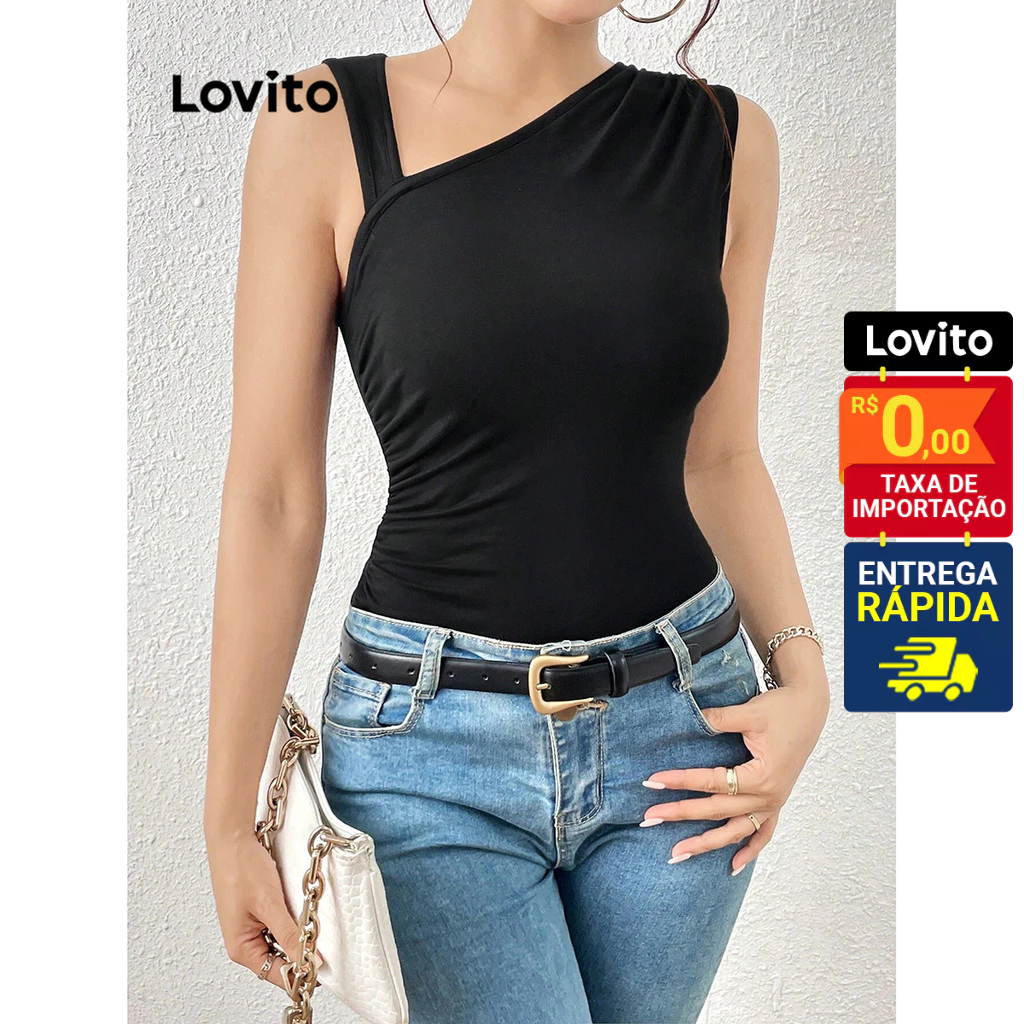 ✅DESTAQUES -❤️Assimétrico -❤️Macio e Confortável ✅DESCRIÇÕES Padrão: Liso Estilo: Casual Tamanho Plus: Não Material: Poliéster Composição: 65%Poliéster 35%Viscose Tipo de Ajuste: Ajuste Regular Transparente: Não Alongamento: Médio Região de Origem: Brasil Continental ✅PACOTE INCLUI 1x Top ✅INTRODUÇÃO LOVITO Lovito é uma marca emergente que acredita no poder das garotas, comprometida em oferecer escolhas de roupas elegantes e acessíveis para diferentes estilos, necessidades e identidades. Acreditamos que a moda deve ser divertida, libertadora e fazer você se sentir ótima. Afinal, o melhor acessório para qualquer look é a autoconfiança. ✅NOTAS DE COMPRA Compare suas medidas com nossa tabela disponível no site. Lembre-se de que, por serem feitas manualmente, as medidas podem variar de 1 a 2 cm. As cores dos produtos também podem ter pequenas diferenças em relação às fotos, dependendo da iluminação e das configurações do seu dispositivo. Siga nossa loja e conheça novos itens e as melhores ofertas para você!! Se você tiver alguma dúvida, converse conosco e responderemos o mais rápido possível.😊