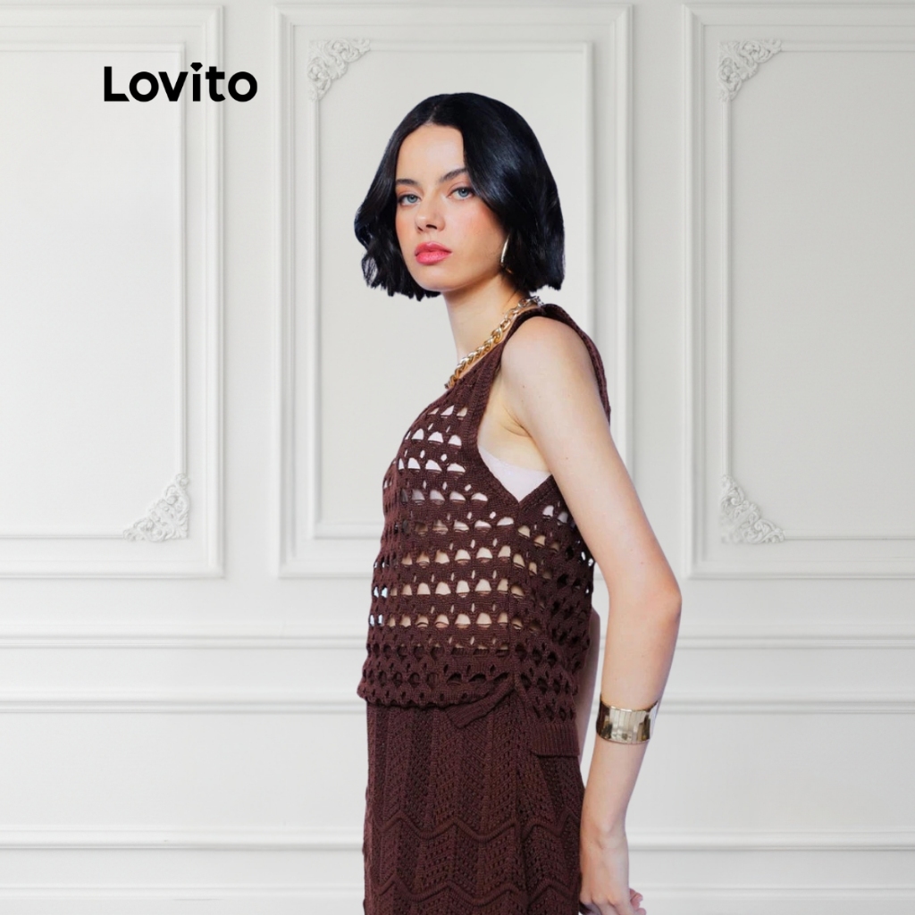 Lovito Regata Tricot Ponto Vazado Basica Feminina TKB978BRL1008