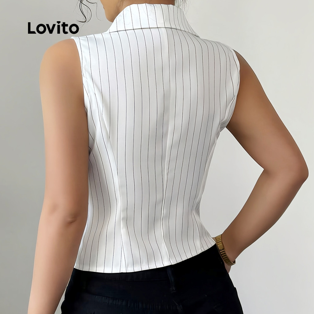 Lovito Regatas Femininas Elegantes Com Botões Superiores E Toque Suave Primavera/verão Listradas Em Branco L138ED359