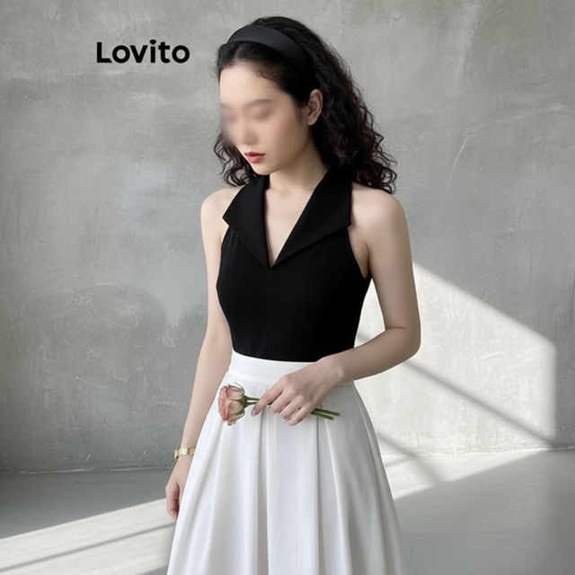 Lovito Regatinha Casual Lisa e Básica de Verão para Mulheres LNE33137