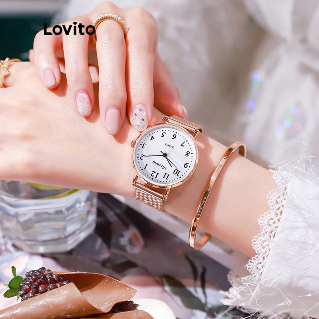 Lovito Relógio Casual De Quartzo Com Textura Lisa E Metal Digital De Quartzo Para Mulheres LNA13103 (Ouro Rosa)