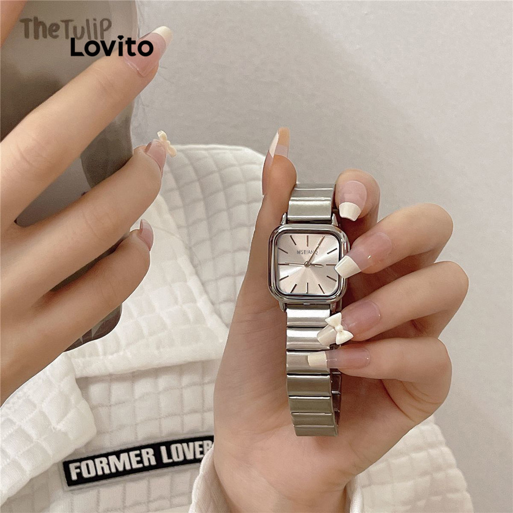 Lovito Relógio Casual De Quartzo Com Textura Lisa E Metal Digital De Quartzo Para Mulheres LNA13090 (Prata)