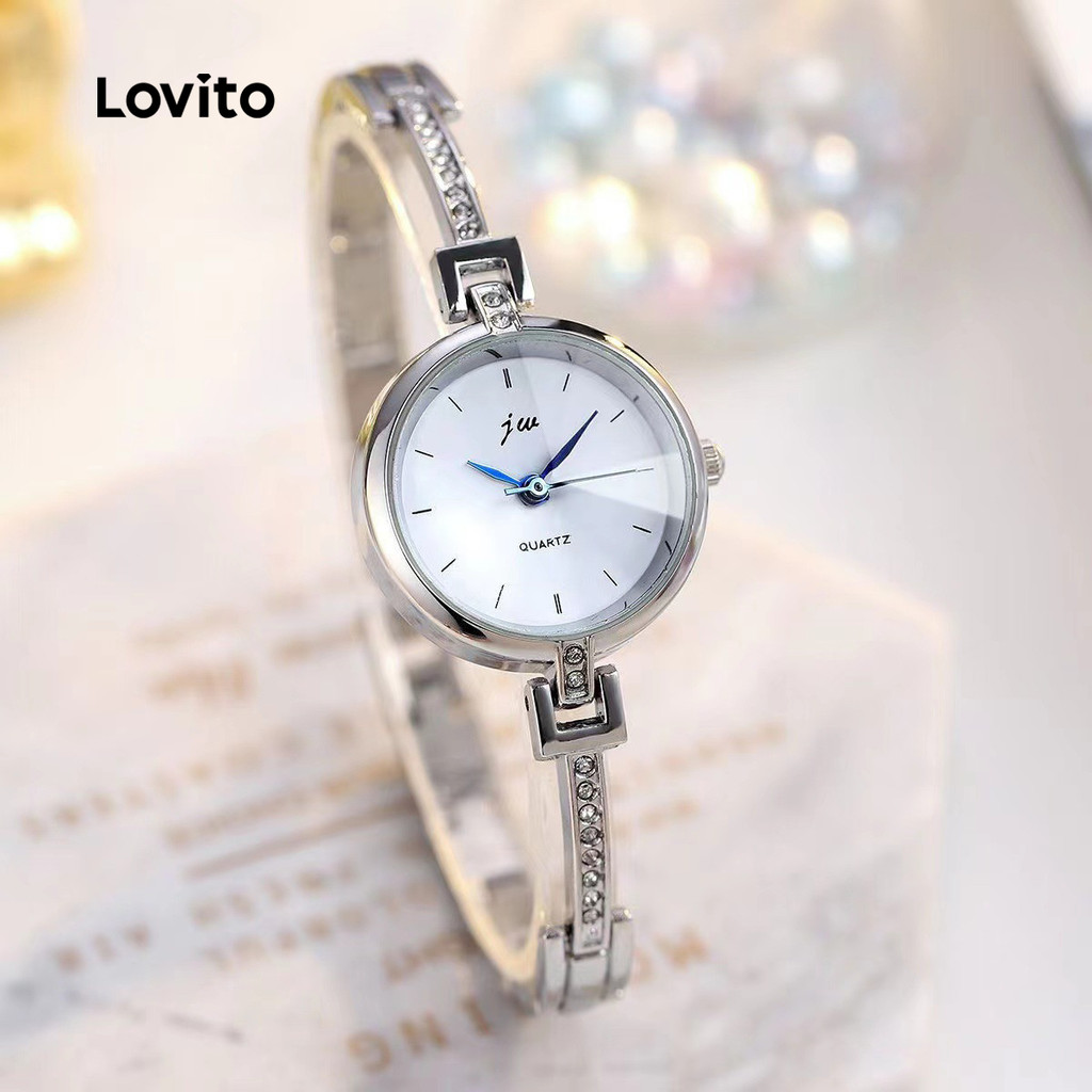 Lovito Relógio Casual de Quartzo Minimalista em Metal com Pedras para Mulheres LFA86249