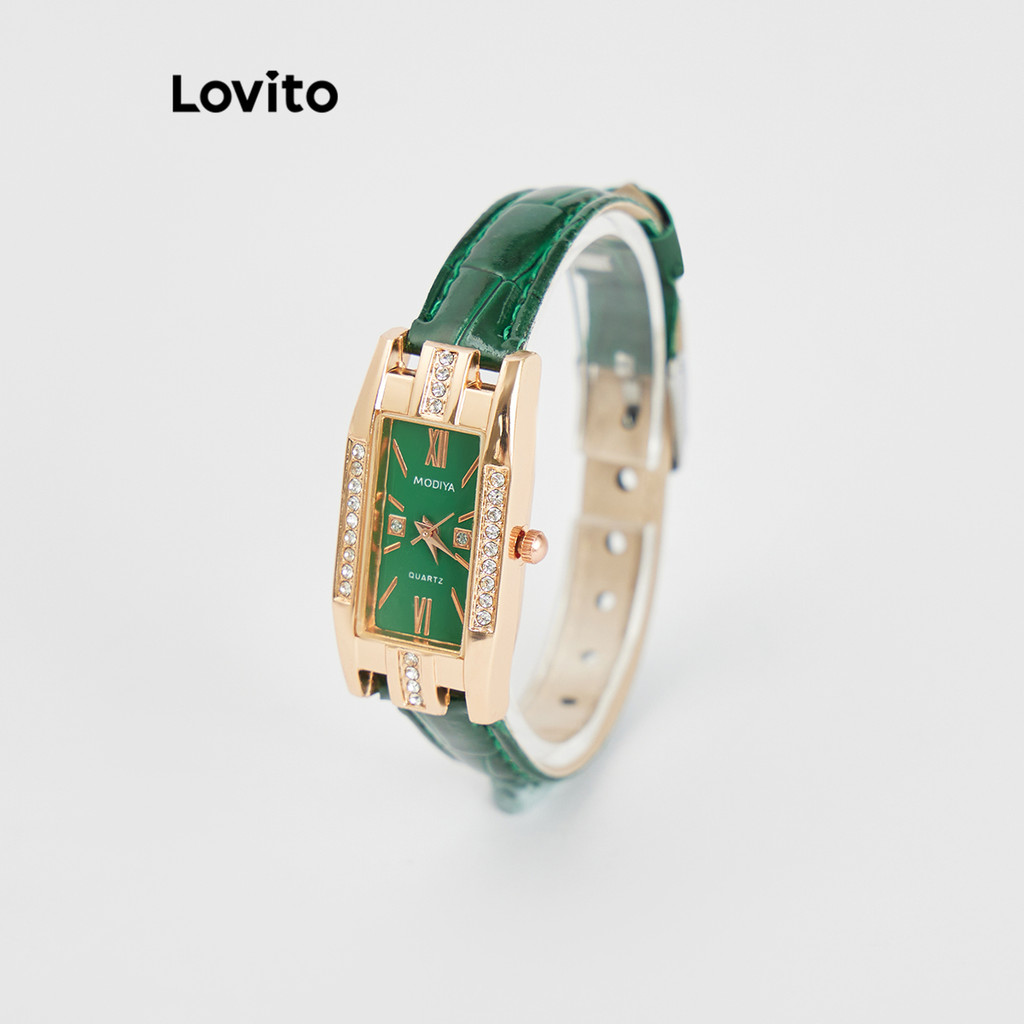 Lovito Relógio Casual De Quartzo Simples E Básico De Quartzo Para Mulheres L69AD052 (Vermelho/Verde)