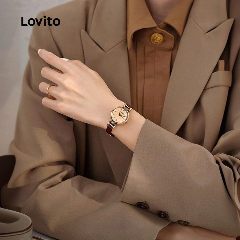 Lovito Relógio De Quartzo Casual Liso Retrô E Elegante, Simples E Versátil Para Todas As Estações Para Mulheres LFA82346