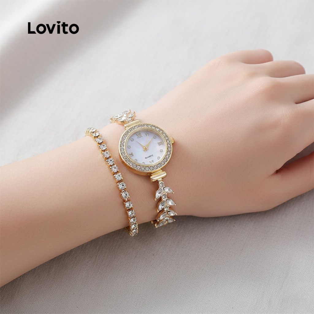 ✅DESTAQUES -❤️Pacote de 2 combinados -❤️Requintado Requintado -❤️diamante flash diamante flash -❤️anual [❤️Por favor, não deixe o relógio molhar❤️] ✅DESCRIÇÕES Estampa / Padrão:Plain Estilo:Casual Material:Metal Warranty Type: No Warranty Feito na China ✅O PACOTE INCLUI 1XRelógio de quartzo ✅INTRODUÇÃO LOVITO A Lovito é uma marca em crescimento que acredita no poder das meninas. Estamos comprometidos em oferecer opções de roupas fashion e acessíveis, para todos os estilos, necessidades e identidades. Acreditamos que a moda deve ser divertida, liberadora e fazer você se sentir incrível. Afinal, o melhor acessório para qualquer look é a autoconfiança! ✅NOTAS DE COMPRA Antes de comprar, dê uma olhadinha na tabela de medidas disponível no site. Lembre-se de que, por serem feitas manualmente, as medidas podem variar de 1 a 2 cm. As cores dos produtos também podem ter pequenas diferenças em relação às fotos, dependendo da iluminação e das configurações do seu dispositivo. Siga nossa loja e conheça novos itens e as melhores ofertas para você!! Se você tiver alguma dúvida, converse conosco e responderemos o mais rápido possível.