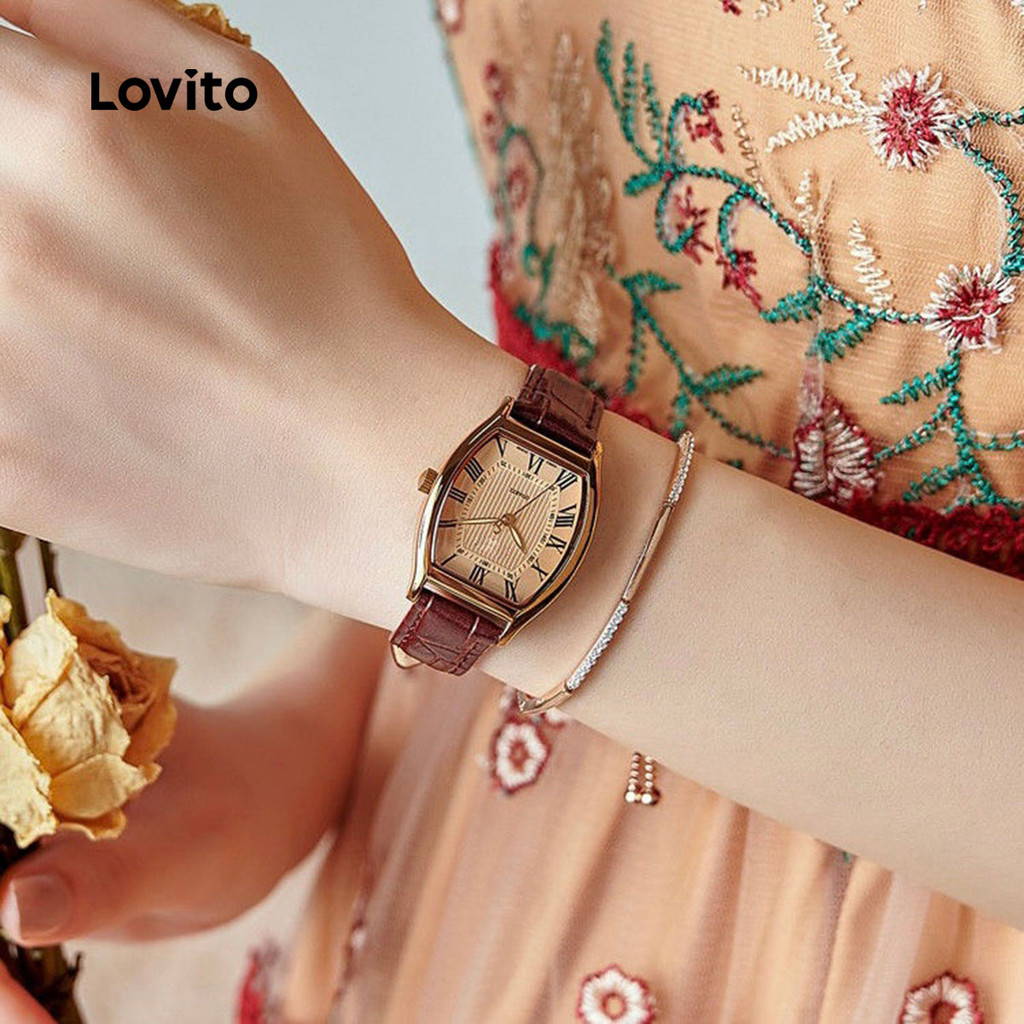 Lovito Relógio Minimalista de Cor Marrom Claro (sem costeletas) LFASCS1590