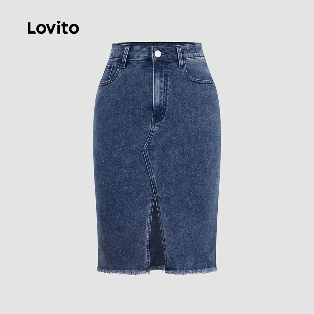 Lovito Saia Casual Lisa Com Fenda Verão/primavera Saia Jeans Para Mulheres L131ED328\2
