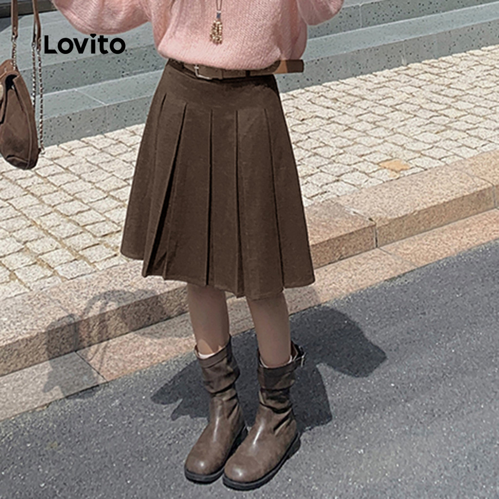 Lovito Saia Casual Plissada Lazer Anual Marrom para Mulheres LK2AD1020