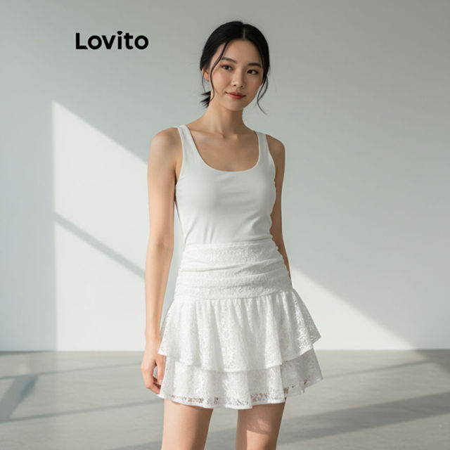 Lovito Saia Feminina Fofa Drapeada Com Babados Lisos L101AD029